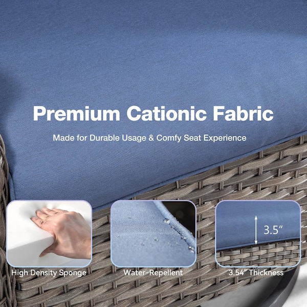 2-Piece Wicker Patio Swivel Rocking Chair Outdoor Bistro Set with Blue Cushions