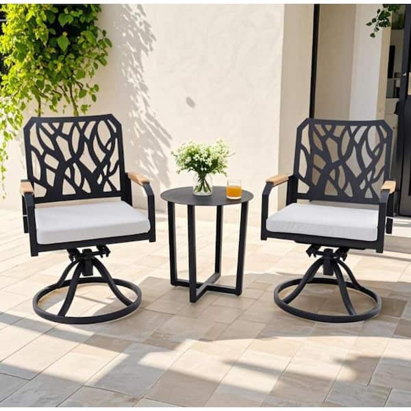 2-Pieces Brown FSC-Certified, Aluminum Outdoor Rocking Chair with White Cushions, Backrest and Wood Armrests