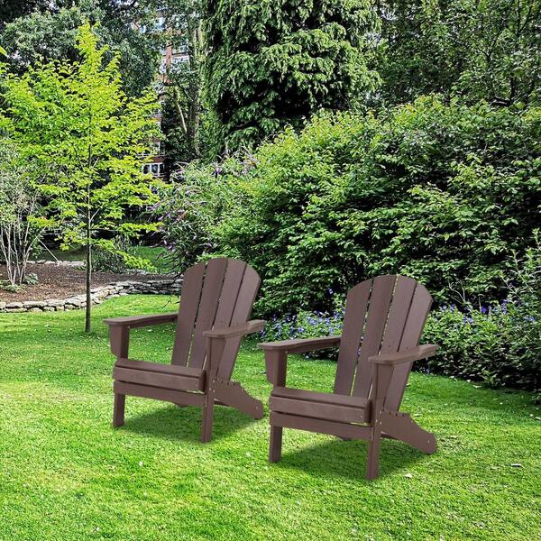 2-Pieces Brown Plastic Outdoor Adirondack Chair for Patio Pool Lounge Chair (2-Pack)