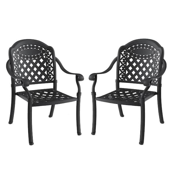 2-Pieces Cast Aluminum Outdoor Dining Chair, Patio Dining Chair with Water Resistant Cushions in Random Colors