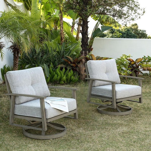 2 Pieces Limed Oak Aluminum Outdoor Couch with Gray Cushions All Weather Patio Furniture Swivel Chairs Armchair Set of 2