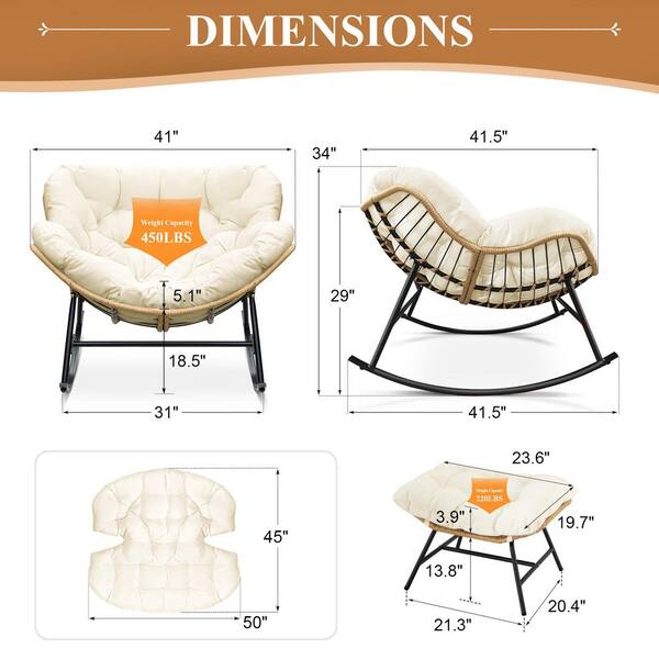 2-Pieces Oversized PE Wicker Outdoor Rocking Chair Papasan Lounge Chair with Beige 5.1 in. Thick Cushion and Ottoman