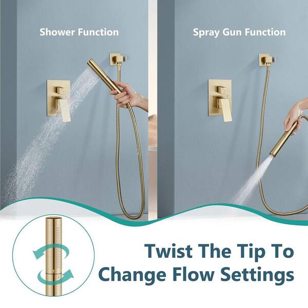 2-Spray 10 in. Dual Shower Head and Handheld Shower Head Wall Mount in Brushed Gold