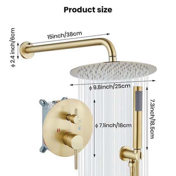 2-Spray 10 in. Round Rainfall Shower Head and Handheld Shower Head Wall Mounted in Brushed Gold