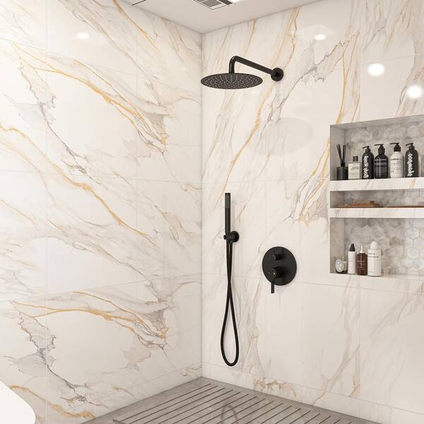 2-Spray 10 in. Wall Mounted Hand Shower and Fixed Shower Head Faucet Combo 2.5 GPM Dual Shower Faucet in Matte Black