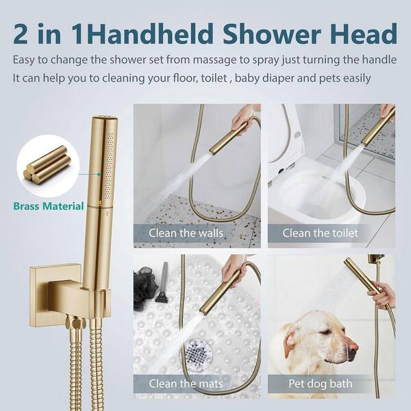 2-Spray 12 in. Dual Shower Head and Handheld Shower Head Wall Mount in Brushed Gold