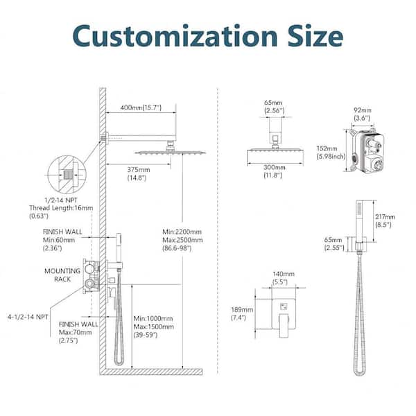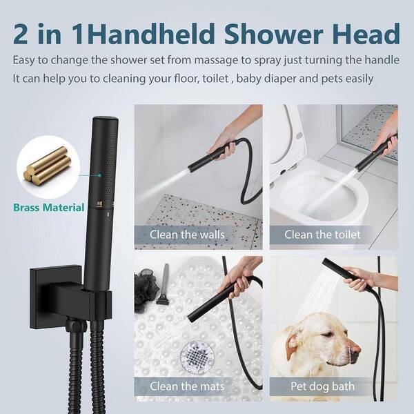 2-Spray 12 in. Dual Shower Head and Handheld Shower Head Wall Mount in Matte Black