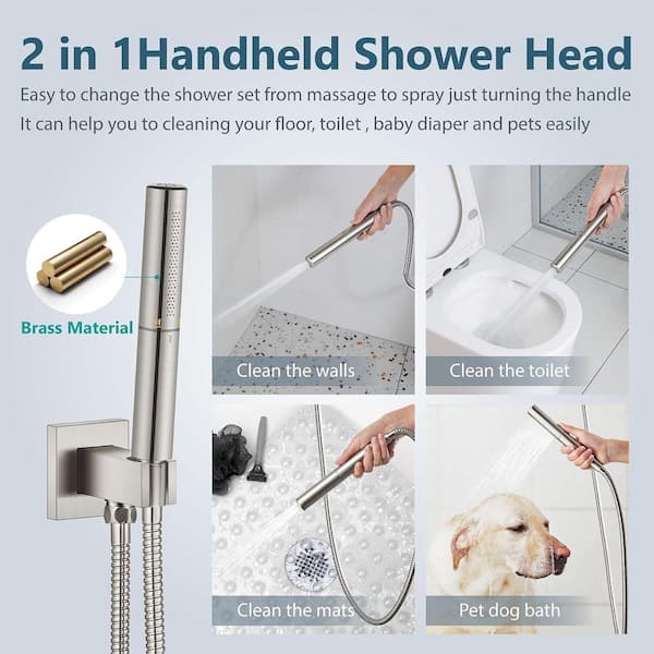 2-Spray 16 in. Dual Shower Head and Handheld Shower Head Wall Mount in Brushed Nickel