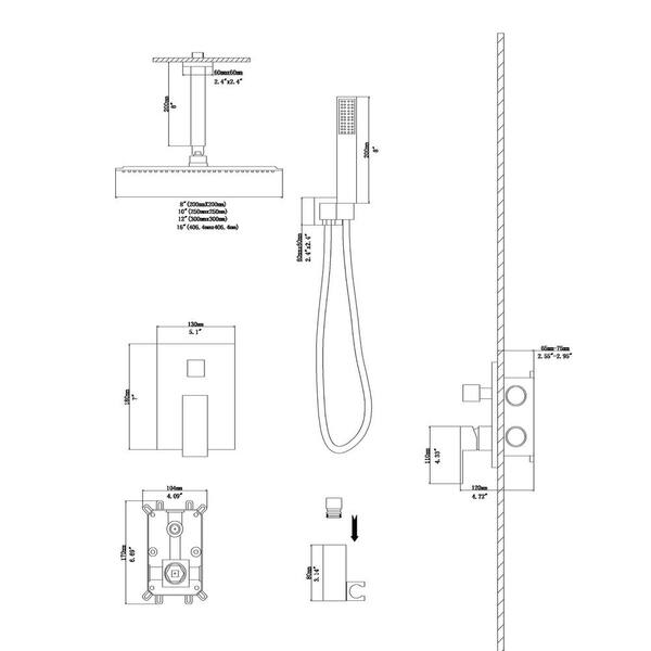 2-Spray Patterns 12 in. Showerhead Face Diameter Ceiling Mounted Shower Head Dual Shower Heads in Gold