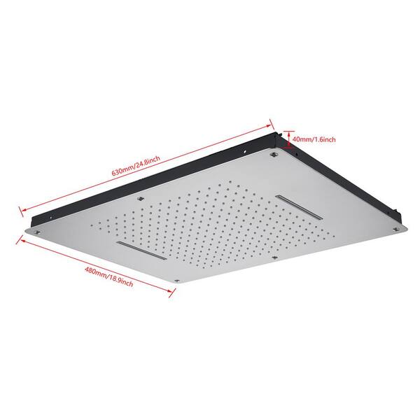 2-Spray Patterns with 2.5 GPM 24 in. Ceiling Mount Rain Fixed Shower Head in Brushed Nickel