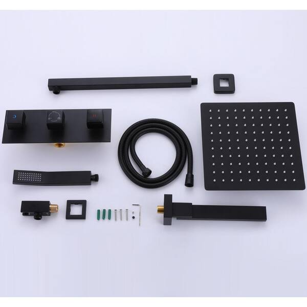 2-Spray Patterns with 2 GPM 10 in. Tub Wall Mount Dual Shower Heads in Matte Black