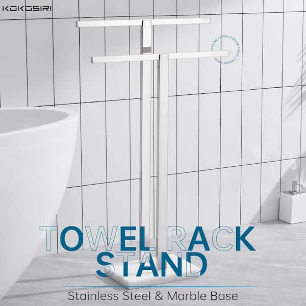 2-Tier Double Bathroom Standing Towel Rack with Marble Base, Stainless Steel in Polished Chrome (1-Pack)