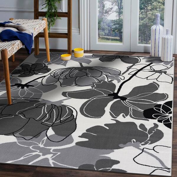 2 X 3 Cream Dark Gray Laguna Floral Indoor Area Rug