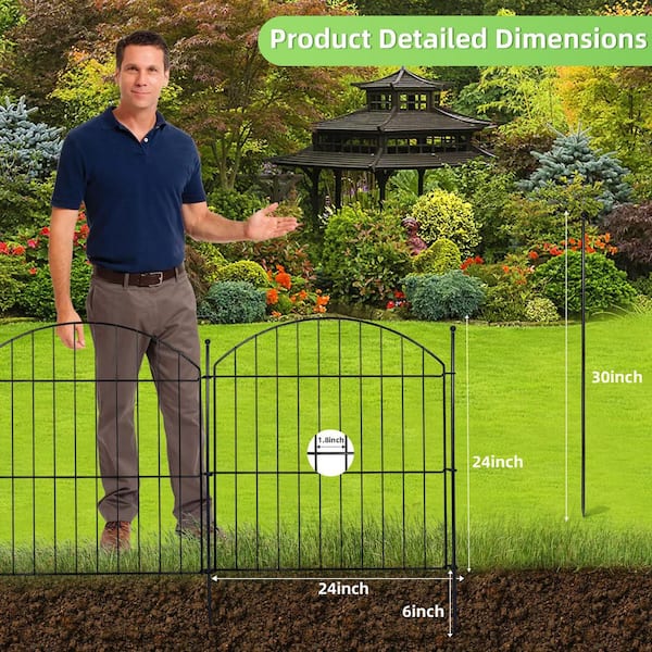 2 ft. x 20 ft. Metal Fence Arched Top Animal Barrier Wire Border Panel Fencing for Yard Patio Outdoor Decor, Black