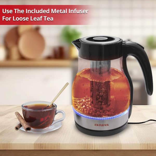 2 in 1-Black Infusion Kettle Boil and Brew with Removable Stainless Steel Tea Infuser, 7-Cups