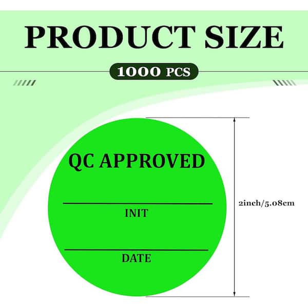 2 in. Fluorescent Green Quality Control Inventory Stickers 1000 Pieces Roll for Shipping Warehouse Organization