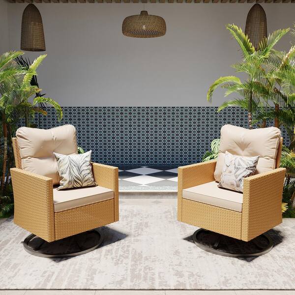 2-piece Beige Wicker 360° Swivel Outdoor Rocking Chair with Beige Cushion