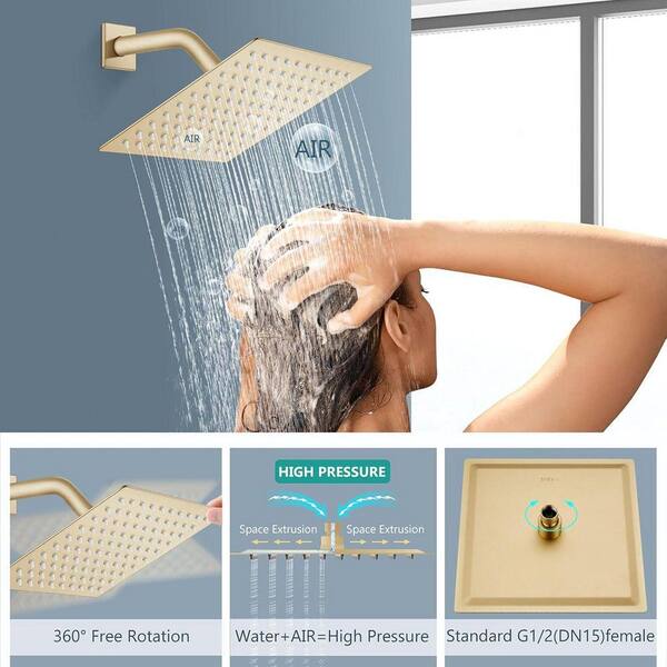 2-spray 8 in. Dual Shower Head and Handheld Shower Head in Wall Mount Brushed Gold