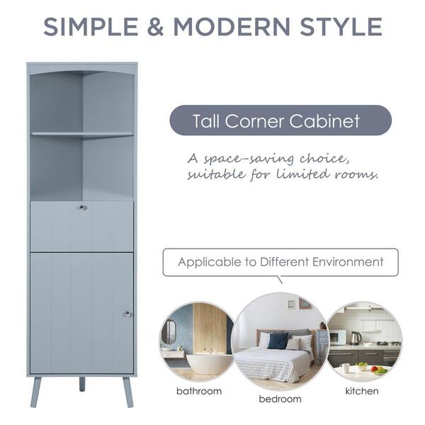20.1 in. W x 14.2 in. D x 63 in. H Blue Gray MDF Board Triangle Elegant Corner Linen Cabinet with Open Shelves