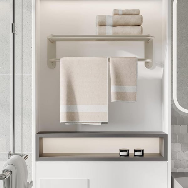 20.2 in. W x 8.5 in. D Brushed Nickel Decorative Wall Shelf, Bathroom Towel Rack