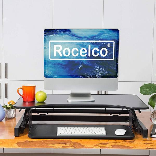 20.5 in. Rectangular Black Standing Desk Converter 32 in. Adjustable Height Support Riser