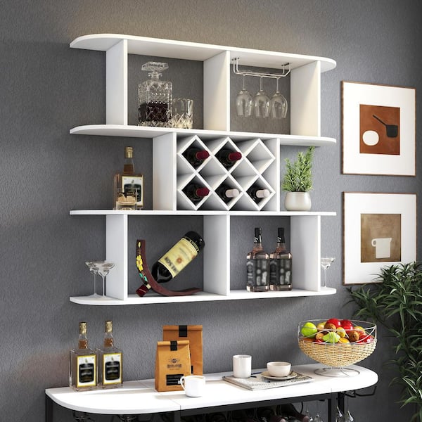 20-Bottle White Large Wall Mounted 3 Tier Wood Wine Rack Storage Rack with Wine Glass Holder Bar Decorative Shelves