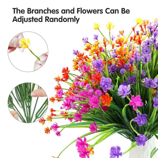 20 Bundles Multi-Colored Artificial Flower Set Realistic Outdoor Indoor Decor UV-Resistant 13.8 in. Tall