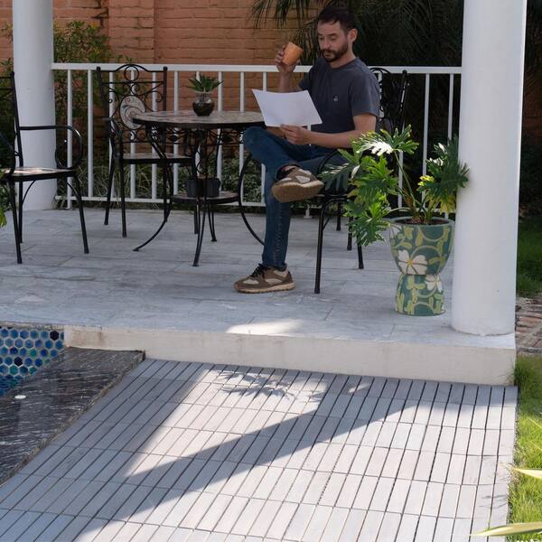 20 -Pieces Light Gray 1 ft. x 1 ft. Interlocking Deck Tiles Checker Pattern Acacia Hardwood Flooring for Patio, Balcony