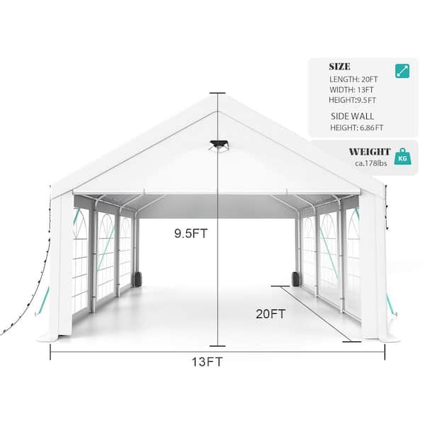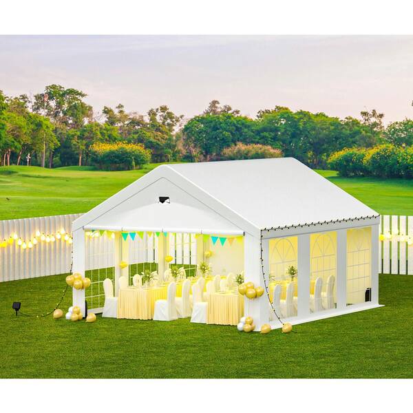20 ft. x 13 ft. White Wedding Holiday BBQ Party Tent, Outdoor Waterproof UV-Resistant Canopy with Equipped, Light Belt