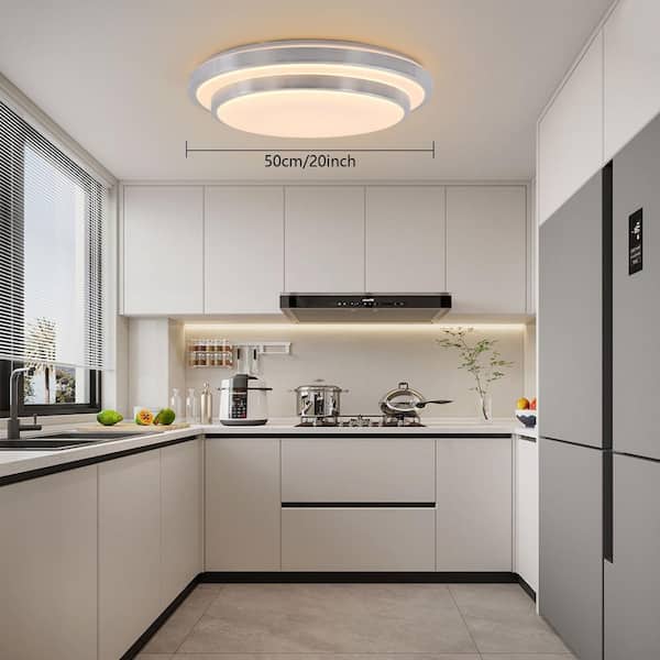 20 in. 1-Light Modern Simple Style Silver Dimmable Selectable LED Flush Mount Ceiling Light with Remote Control
