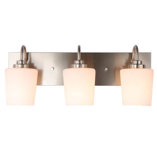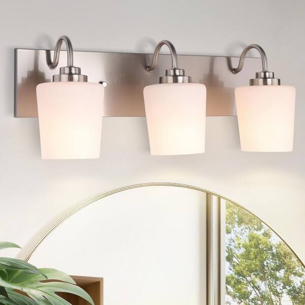 20 in. 3-Light Silver Wall sconce with Iron Milky White Glass Shade for Indoor Room