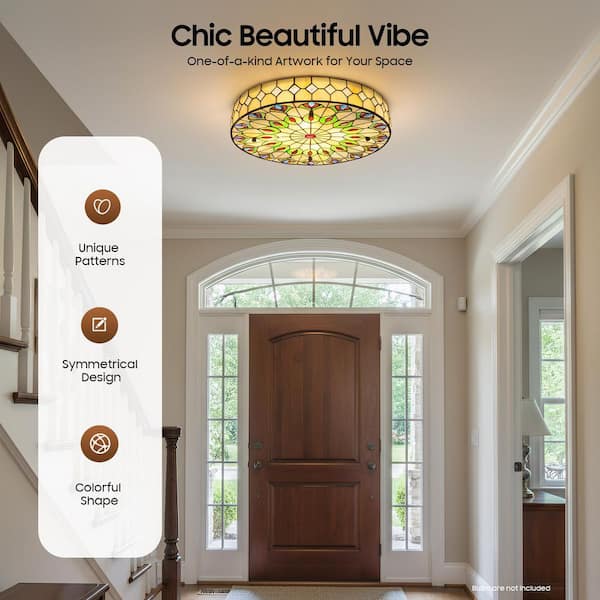 20 in. 4-Light Colorful Vintage Tiffany Flush Mount Ceiling Light Fixture with Colorful Design Lampshade