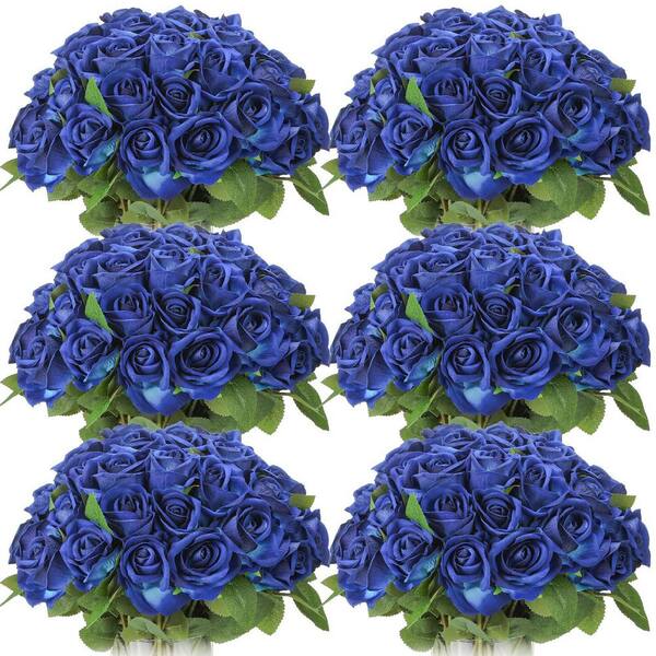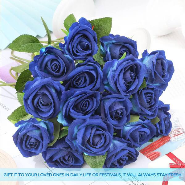 20 in. Blue Outdoor Artificial Rose Plastic Flower for Home 50 Piece