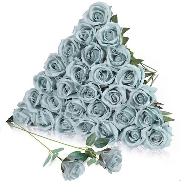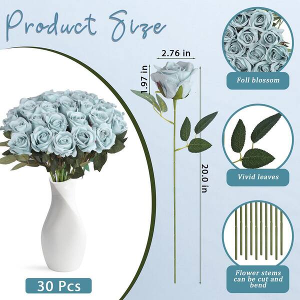 20 in. Blue Outdoor Artificial Rose Plastic Flower for Home Decoration 30-Pieces