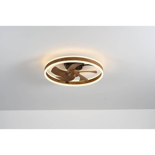 20 in. Farmhouse Black Indoor LED Ceiling Fan with Smart APP Remote Control Flush Mount Ceiling Fan Painted Walnut Blade