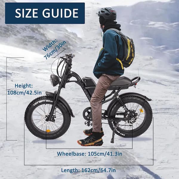 20 in. Fat Tire Black Aluminum Electric Bicycle with LCD Display