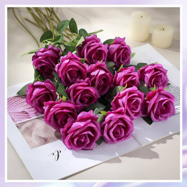 20 in. Purple Outdoor Artificial Rose Flower for Decoration (Set of 40)