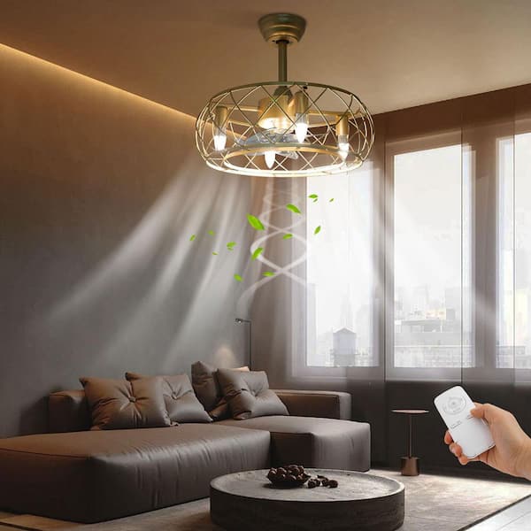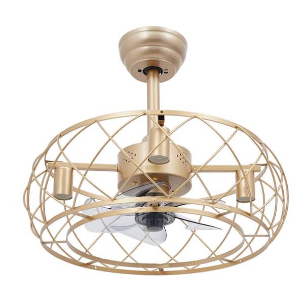 20 in. Retro Simple Style Gold Indoor Metal Caged Ceiling Fan with Light Kit and Remote Control