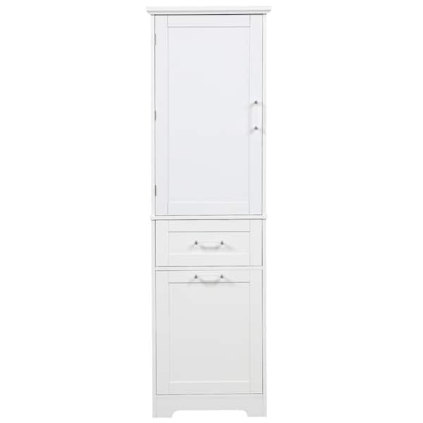 20 in. W x 13 in. D x 68.1 in. H White Linen Cabinet with Doors and Drawer, Multiple Storage Space, Adjustable Shelf