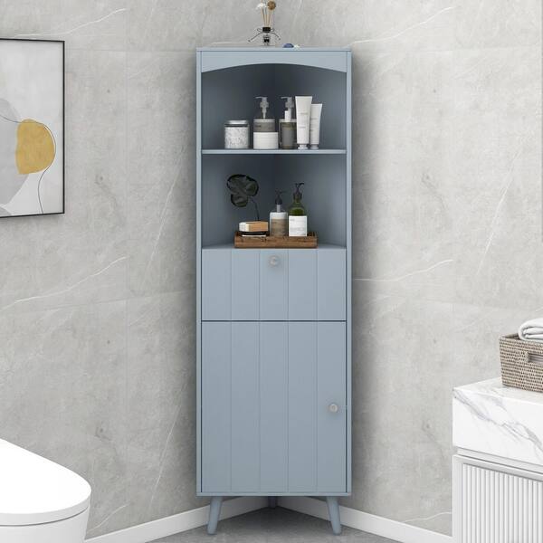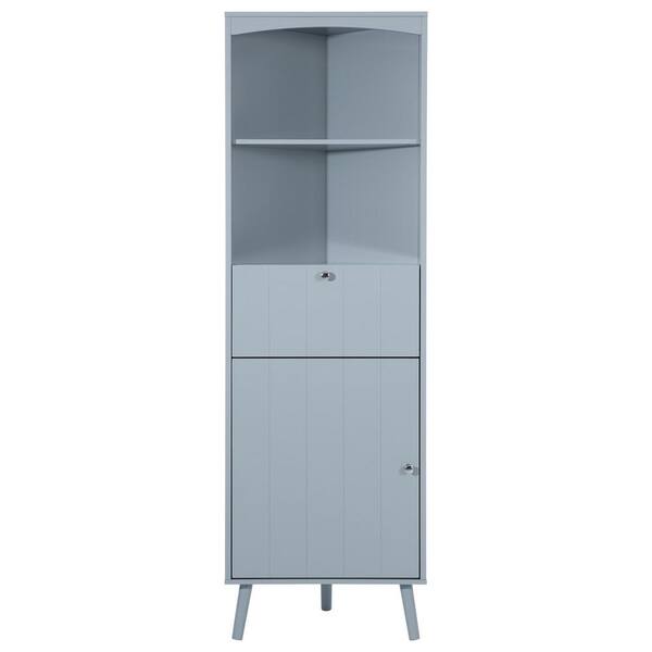 20 in. W x 14 in. D x 63 in. H Blue-grey Wood Linen Cabinet With Exterior Shelves