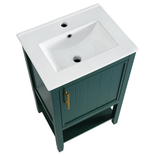 20 in. W x 15 in. D x 33 in. H Freestanding Bath Vanity in Green with White Ceramic Top