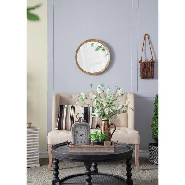 20 in. W x 20 in. H Circle Solid Mango Wood Framed Wall Mounted Bathroom Vanity Mirror in Natural Decorative Mirror