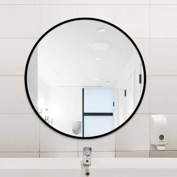20 in. W x 20 in. H Round Metal Framed Wall Bathroom Vanity Mirror in Black