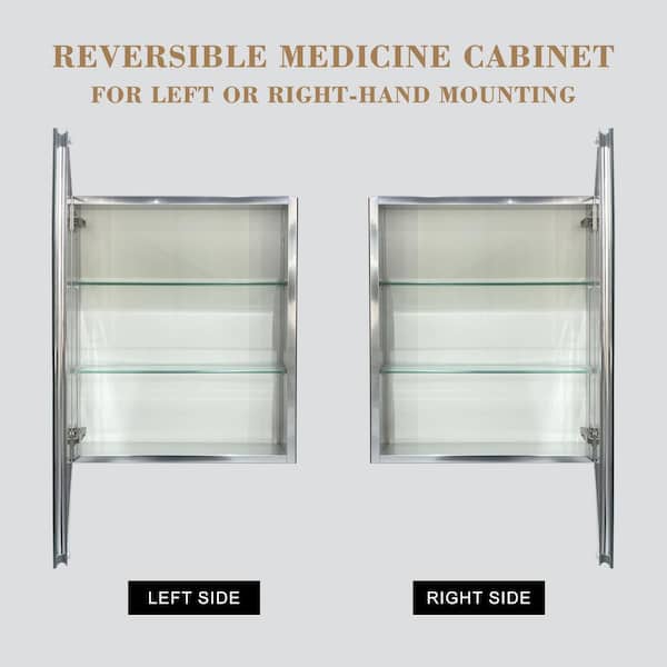 20 in. W x 26 in. H Rectangular Silver Aluminum Recessed/Surface Mount Medicine Cabinet with Mirror
