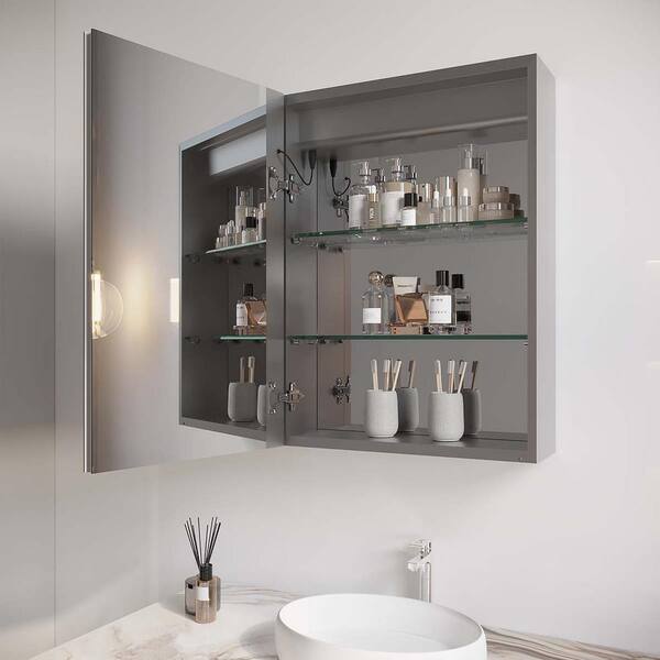 20 in. W x 26 in. H Rectangular Silver LED Anti-Fog Recessed/Surface Mount Medicine Cabinet with Mirror