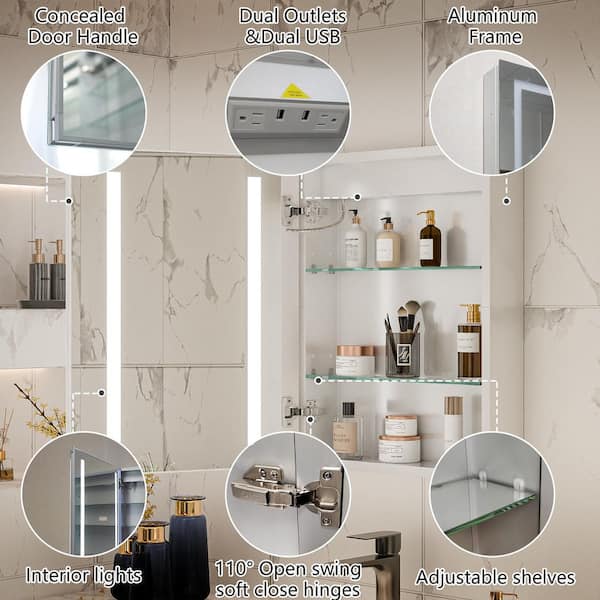 20 in. W x 26 in. H Silver Recessed/Surface Mount Lighted Medicine Cabinet with Mirror,Dimming,Defog,Open Door On Left