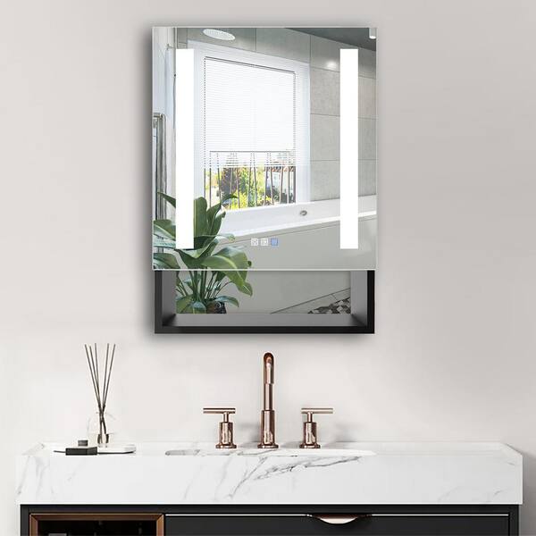 20 in. W x 28.01 in. H Rectangular Lighted LED Fog Free Surface/Recessed Mount Medicine Cabinet with Mirror Right Open