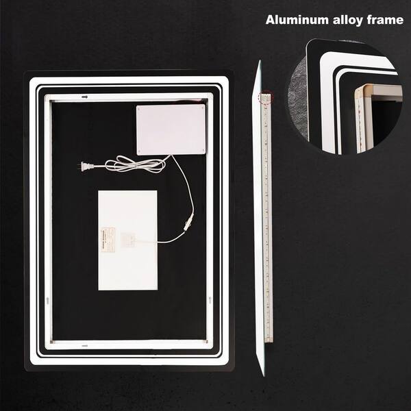20 in. W x 28 in. H 3-Tone Modern Style Frameless Rectangular LED Vanity Interior Design Wall Mirror
