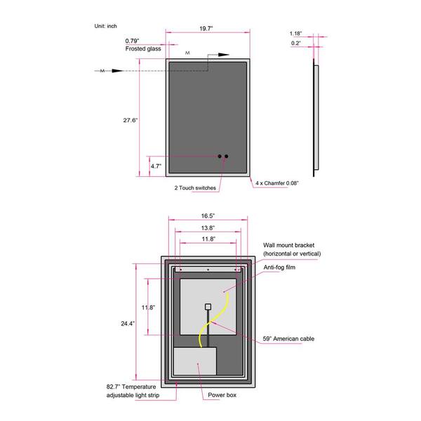 20 in. W x 28 in. H LED Rectangular Framed Dimmable Wall Bathroom Vanity Mirror in White