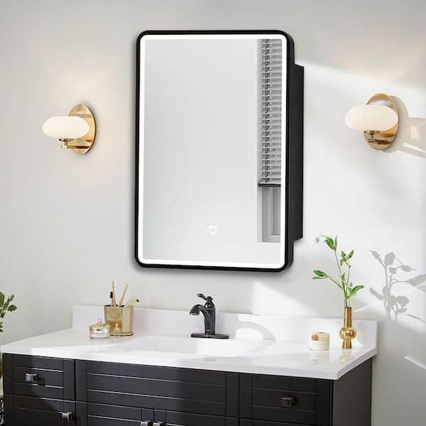 20 in. W x 28 in. H Rectangular Black Framed Iron Medicine Cabinet with Mirror Anti-Fog Function and 3-Colors Light